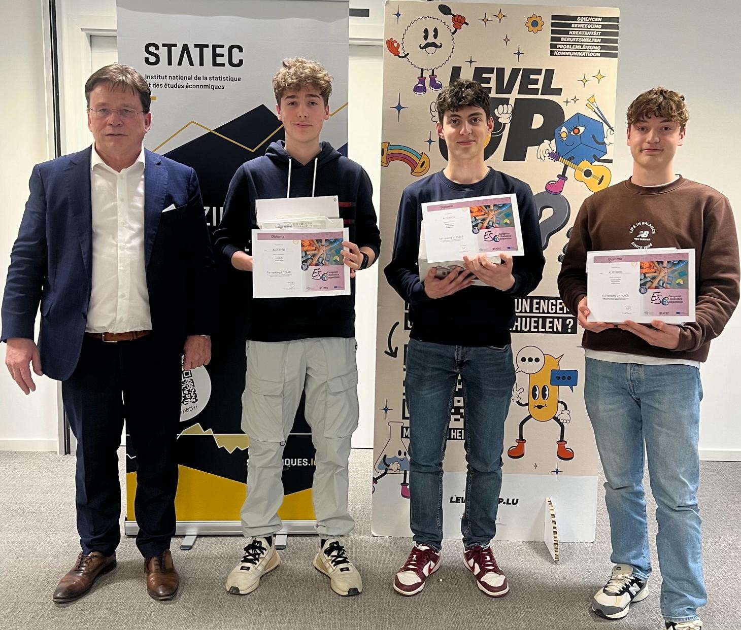 De Misael, den Damien an den Nathan aus eiser 1CB hu sech als Team _Algebros_ no enger 2. Plaz am leschte Concours dëst Joer déi 1. Plaz erkämpft an déi national Phas vun der European Statistics Competition an hirer Alterskategorie …