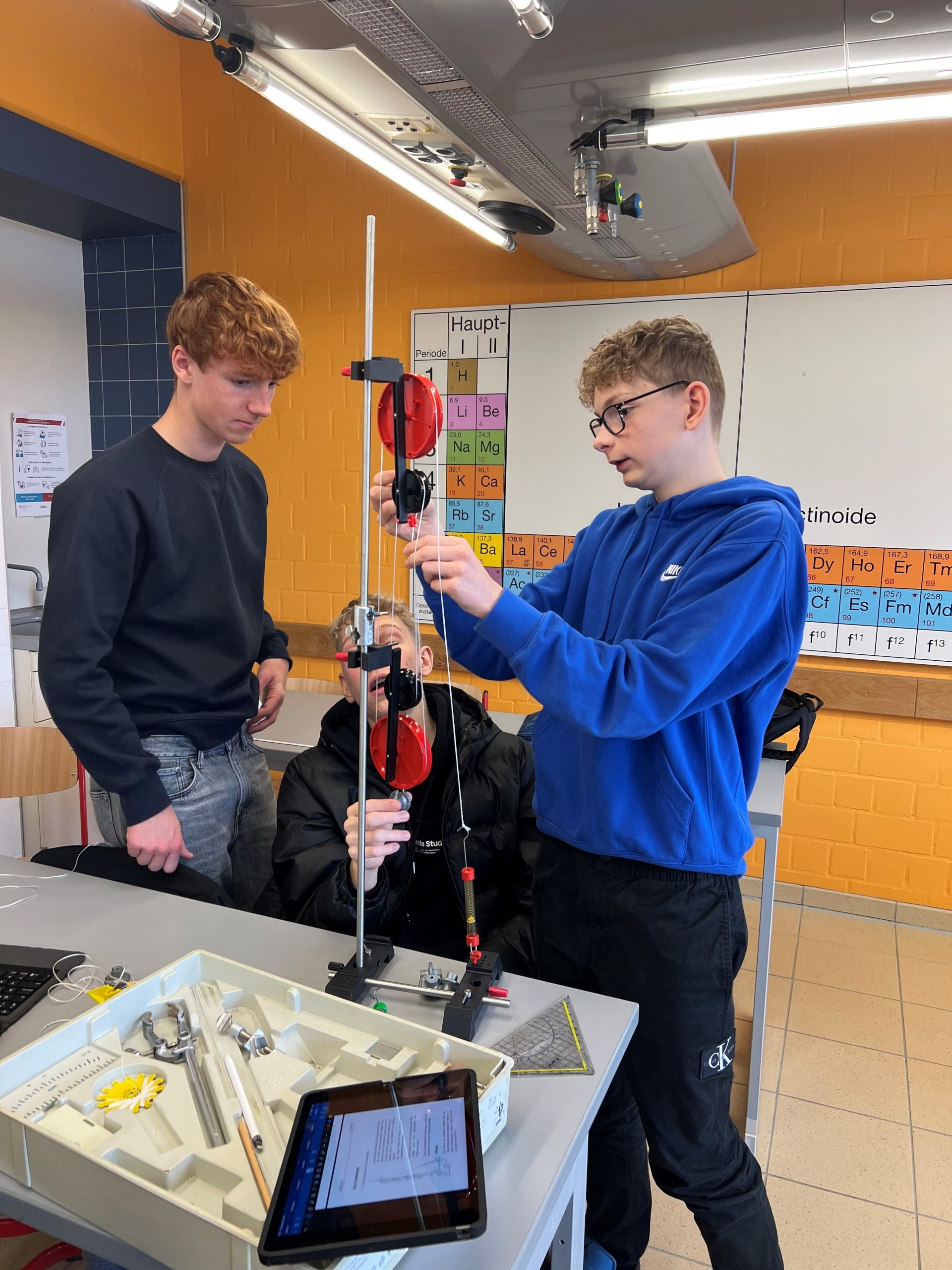Eis Schüler vun der 4G3S a 4GIG hunn an de leschte Wochen an der Physik d’Theema vun den einfache Maschinnen duerchgeholl. Am leschten TP hu si d’Fläschenzich méi genau ënnersicht an erausfonnt, datt et engem mat esou enger Maschinn méi …