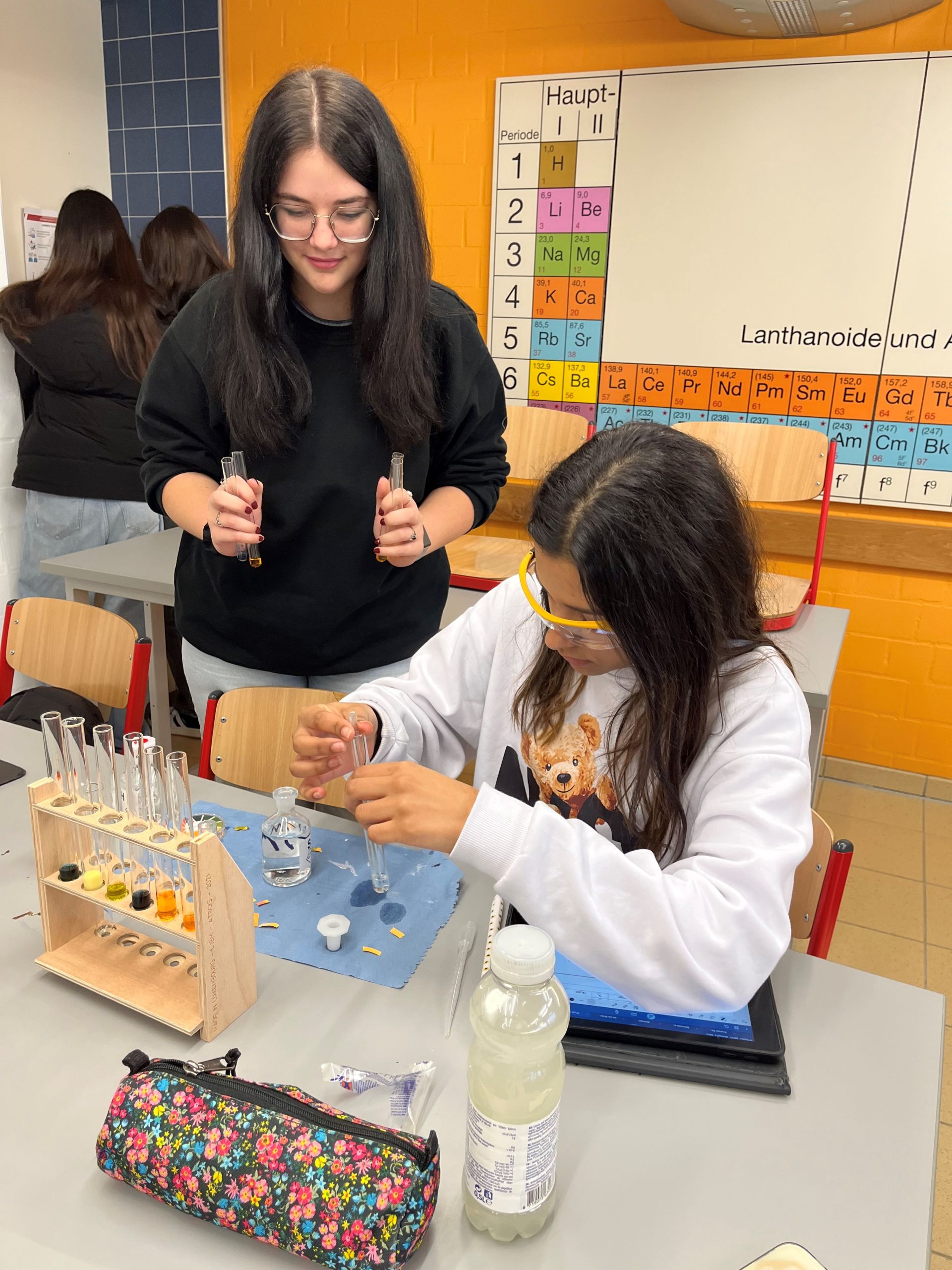 Hei e puer Impressiounen aus dem praktesche Chimiescours. Eis Schüler maache ganz vill Versich selwer, wéi z. B. de pH-Wäert vu villen Alldagsproduiten ze bestëmmen. Sou kommen eis Schüler der Chimie méi no a kréien hoffentlech Spaass un de Sciencen. …