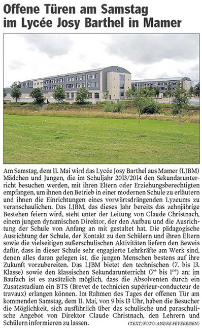 Den 2. Juni 2013 wor den LJBM um Lernfest zu Mamer vertrueden. D’Lernfest gëtt vun der Landakademie vun der LEADER-Regioun Réiden-Wolz organiséiert an wor dëst Joer fir déi 4. Kéier. Et ass eng Veranstaltung wou all Altersgrupp d’Méiglechket huet an …