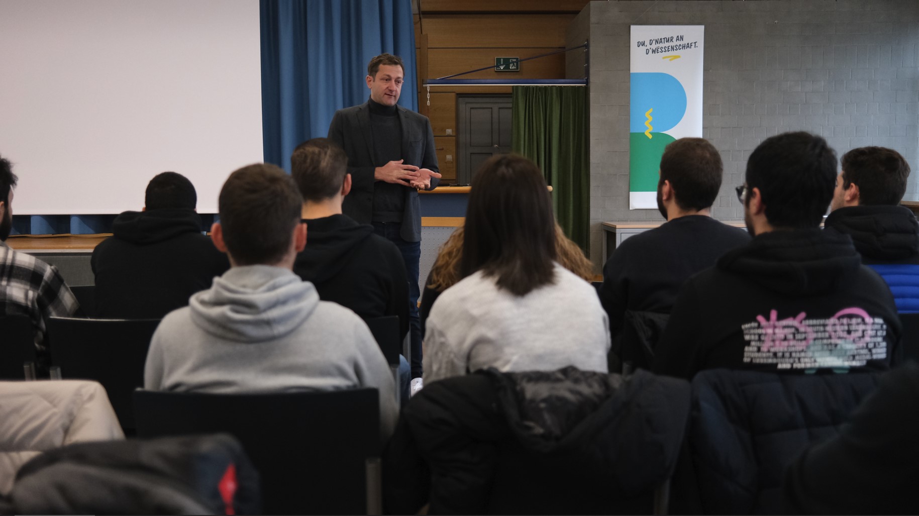 E Freideg, den 20.1., huet d’Direktioun vum LJBM zesumme mat hire Coordinateuren d’BTS-Studente vun eisen 3 Studiegäng am roude Gebai um Belval begréisst. Den Här Christnach huet a senger Ried d’Rees vun eise BTSen aus de leschte Joren nach eemol …