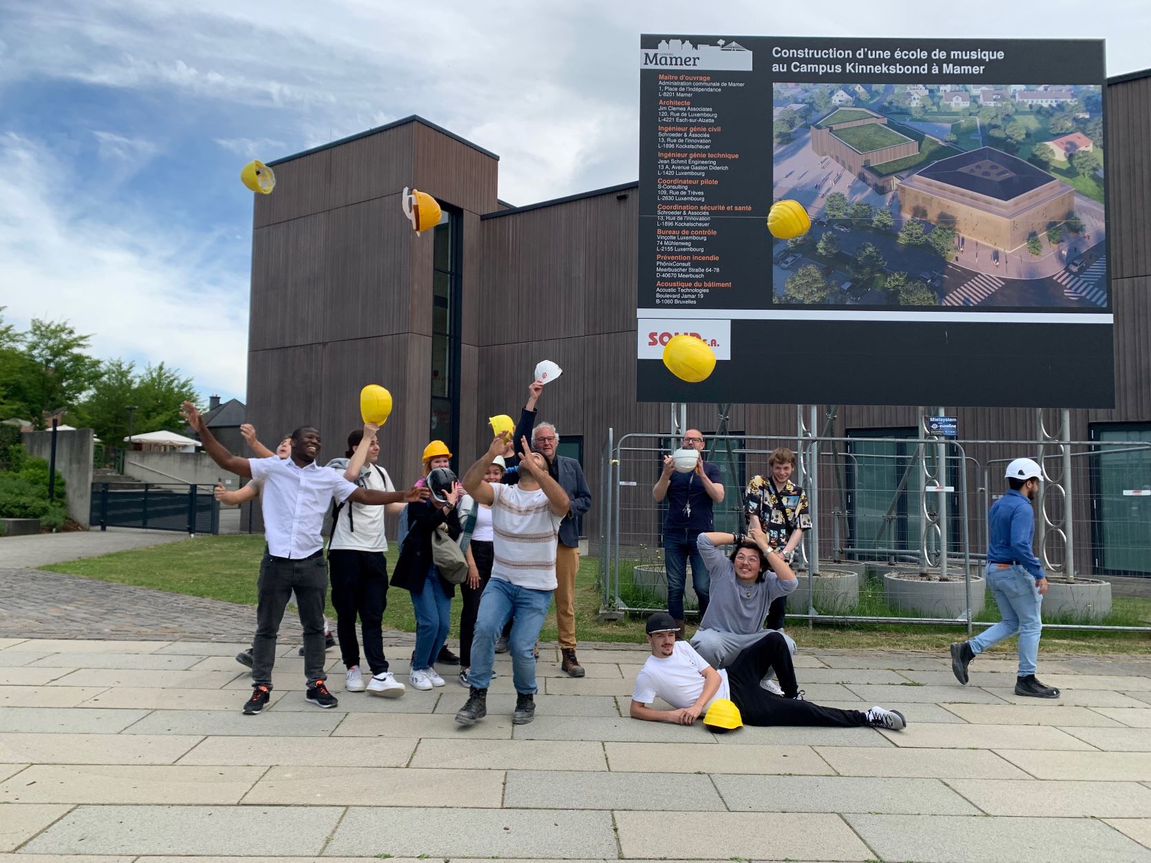 Vielen Dank an die Gemeinde Mamer und an das Architekturbureau Jim Clemes für die interessante Baustellenbesichtigung. Die Schüler der DC3DB haben viele spannende Details gesehen, die zusammen mit den Fachleuten analysiert und diskutiert werden konnten. Zum Schluss durften die Helme …