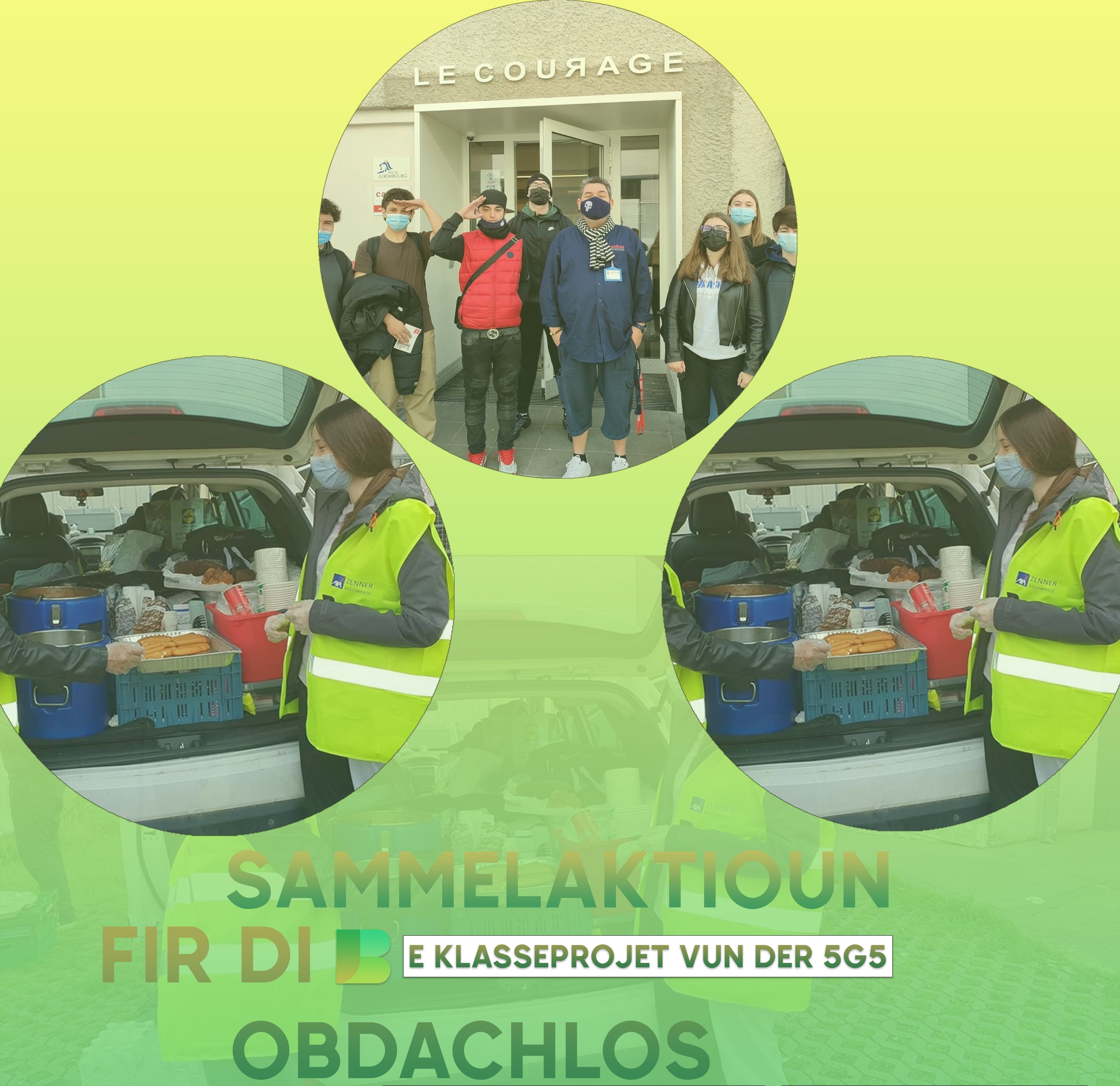 Am Kader vun hirem Klasseprojet „Obdachlosen hëllefen“ huet d‘5G5 d’lescht Joer Kontakt mat verschiddenen Hëllefsorganisatiounen opgeholl, e Sensibiliséirungsvideo gedréit an am Juli eng Sammelaktioun an der Schoul organiséiert. An der grousser Vakanz goufen dunn Këschte voll Kleeder a Liewensmëttel un …