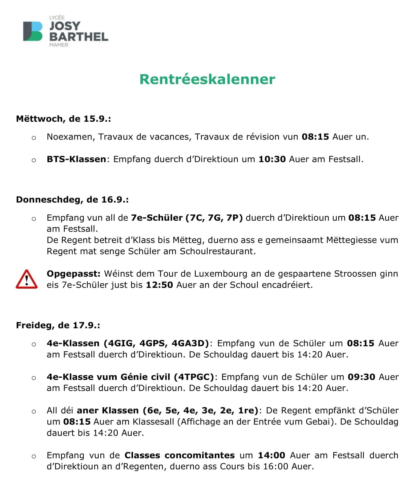 Et ass endlech souwäit! 🥳 Nodeems gëschter eis 7e-Schüler hier nei Schoul entdecke konnten, sinn haut och all eis aner Schüler nees zréck an eis Säll sinn nees all mat Liewe gefëllt. 🤩 Mir freeën eis iech all erëm bei …
