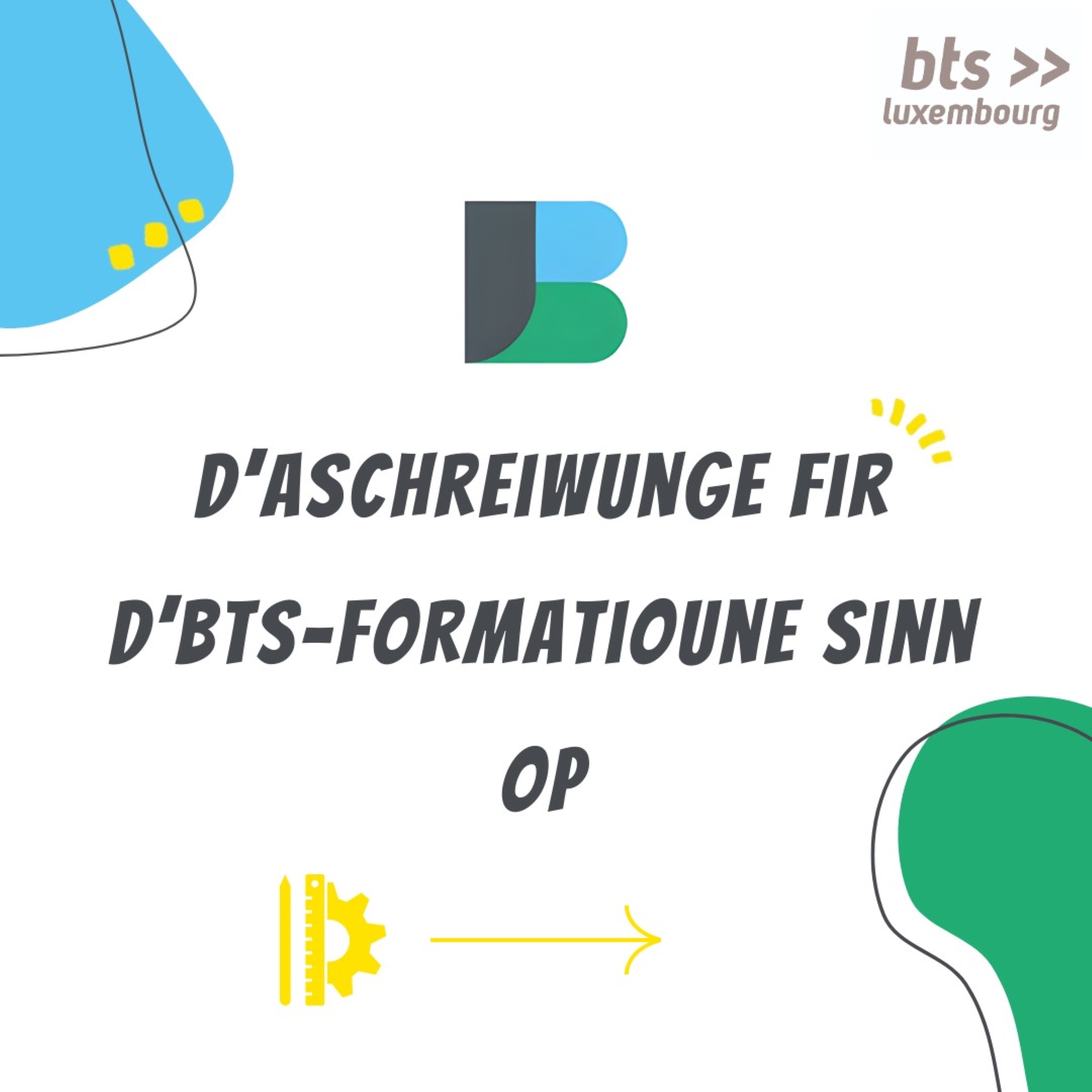 Léif zukünfteg Studenten, d’Aschreiwunge fir eis 3 BTS-Formatioune sinn op! Villäicht fannt dir jo och an eiser Offer eng Alternativ zur Uni. Mir bidden 3 flott Studiegäng un; de BTS Building information modeling (BIM), de BTS Bâtiments et Infrastructures (BBI) …