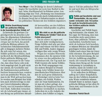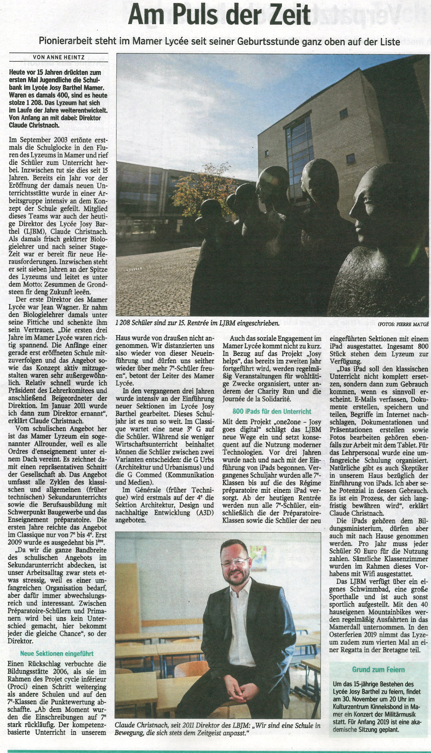 Freides, den 26. September, gouf de Mérite Jeunesse virun 200 Schüler am LJBM presentéiert. D’Schüler hu geléiert, dass dësen internationalen Programm an d’Liewen geruff gouf, fir si an hiren Interessien ze ënnerstëtzen. Matmaache ka jiddereen tëschent 14 an 25 Joer, …
