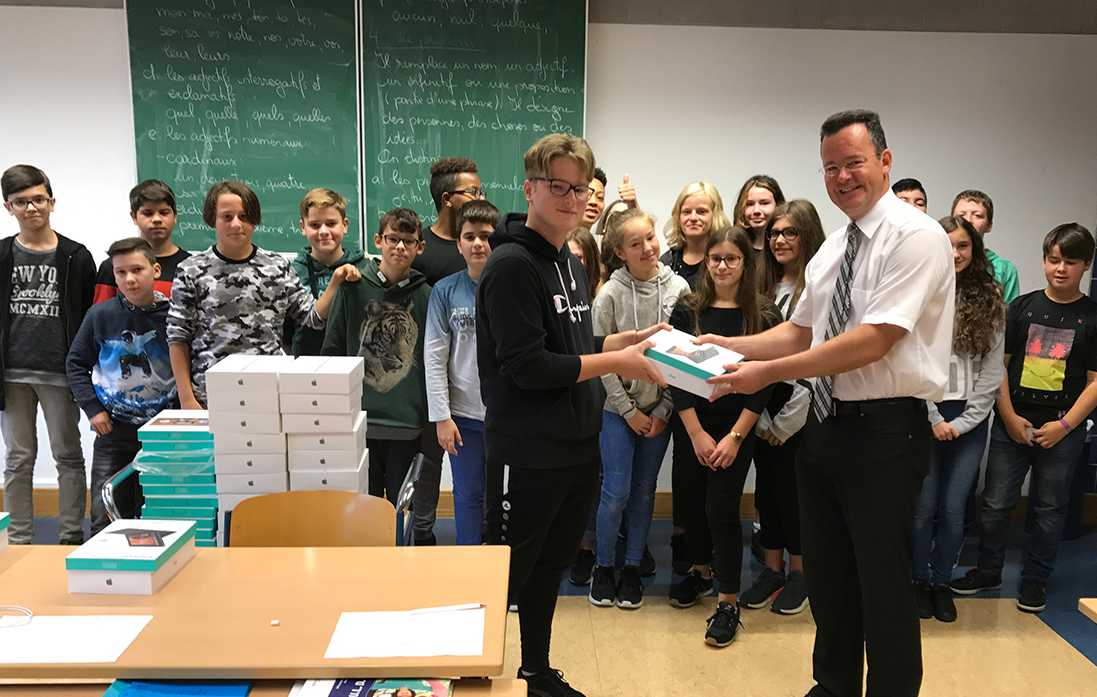 Am Kader vum Projet “one2one – Josy goes digital” huet den Här Christnach haut op enger éischter 7es-Klass de Schülerinnen a Schüler en neien iPad iwwerreecht. An deene nächste Wochen ginn och nach all aner 7C- a 7G-Klassen souwéi och …