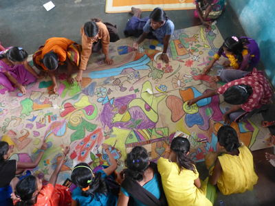 Konschtmaterial finanzéiert vun de Schüler a vum Personal vum LJBM.