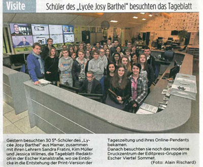 Article Tageblatt du 1er avril 2016 – [Photos] Article Luxemburger Wort du 3 mai 2016