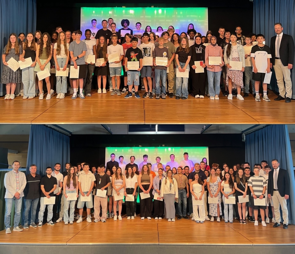 De leschte Mëttwoch war d’Präisiwwerreechung fir eis “élèves méritants”. Déi beschte Schüler vun all Klass krute vum Här Christnach en Zertifikat an e Kaddo iwwerreecht an hunn dëse Präis ganz houfereg op der Bün an Empfang geholl. Mir gratuléieren hinnen …