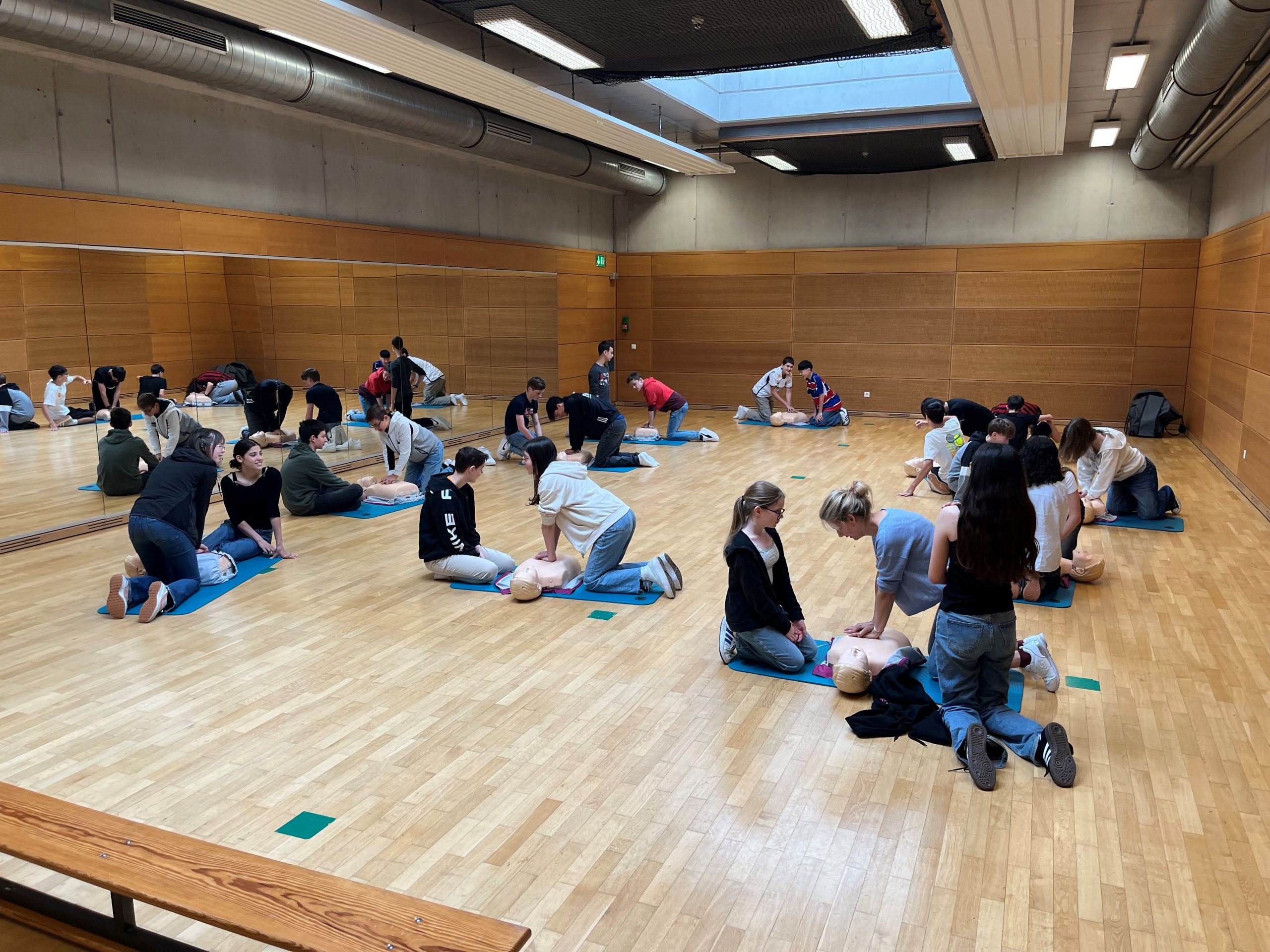 No de Schüler vu 4e a vun 2e hunn déi lescht Wochen och eis 6e-Schüler am Kader vun der Campagne “Réagis” liewenswichtegt Wësse geléiert a praktesch ageüübt. Si hunn trainéiert een Häerzstëllstand z’erkennen, den 112 unzeruffen an eng Häerzmassage ze …