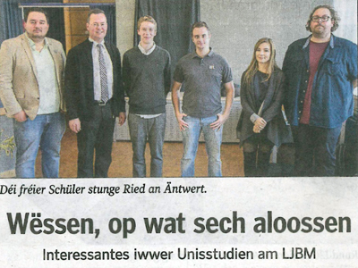 En Donneschden, de 16. November hunn eng ronn 110 Schüler vun de Klassen 4e an 3e aus dem Enseignement Classique a Général aus dem Mamer Lycée un der Qualifikatiounsronn fir déi 11. Naturwëssenschaftsolympiad deelgeholl. Ze beäntwerte woren 30 Froen zu …