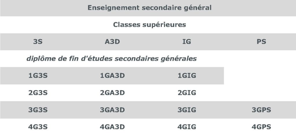 Les élèves y suivent le programme traditionnel (6G ou 5G), enrichi de deux options intégrées à l’horaire (2h/semaine):