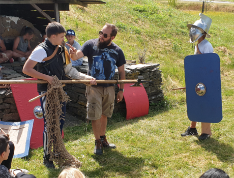 Ugefaangen huet den Dag mat enger interessanter visite guidée vum Site. D’Benevolle vun der a.s.b.l ARC-HAB, déi de Site archeologesch erfuerscht hunn, hunn unhand vu sëlleche Fondstécker an interessante Maquetten de Schüler d’Geschicht vun der villa rustica méi no bruecht.