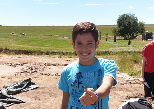 Op der Gruewung hat de Pedro direkt de richtegen Ausgriewerbléck an huet eng gutt erhale Réimesch Bronzemënz fonnt. Dës Mënz wäert zu der besserer Datéierung vum ausgegruewene Gebai bäidroen.