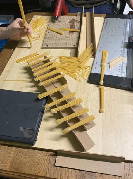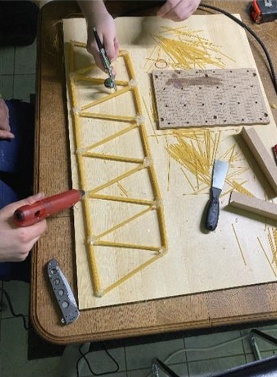 An de leschte Wochen huet sech d’2GIG méi genee mat de Fachwierker befaasst. D’Schüler hunn dobäi och hir eege Brécken entworf, berechent a gebaut. Gratulatioun un d’Gewënnerekipp: Hir Bréck aus 400 Gramm Spaghetti huet herno iwwer 11 kg gedroen.