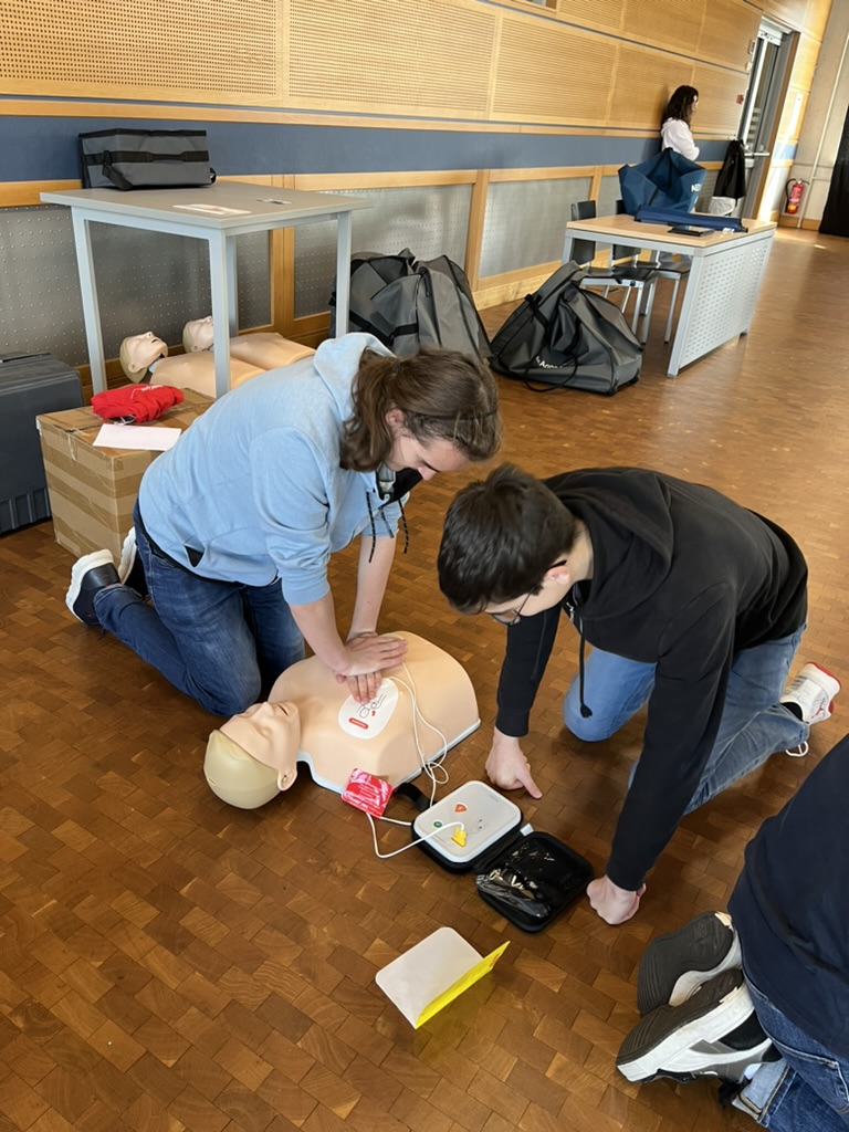 Am Kader vun der Campagne “Réagis” vum LRC (Luxembourg Resuscitation Council) a ganz no dem Motto “E Geste, dee Liewe rett” hunn d’Schüler vu 4e an 2e och dëst Joer nees liewenswichtegt Wëssen opgefrëscht. Si hunn nach eemol trainéiert den 112 ze ruffen, eng Häerzmassage ze maachen an d’Häerz mat Hëllef vum Defibrillator nees an de Rhythmus ze kréien. Mat dëse Grondschrëtter léieren déi jonk Leit am Eeschtfall op een Häerzstëllstand ze reagéieren an esou d’Zäit z’iwwerbrécken, bis de Samu antrëfft. Den “Du” ass wichteg!