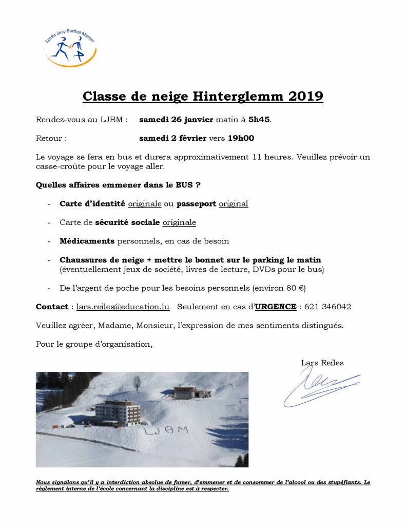 Publié le 25/01/2019Le LJBM souhaite une bonne classe de neige 2018-2019 à tous !