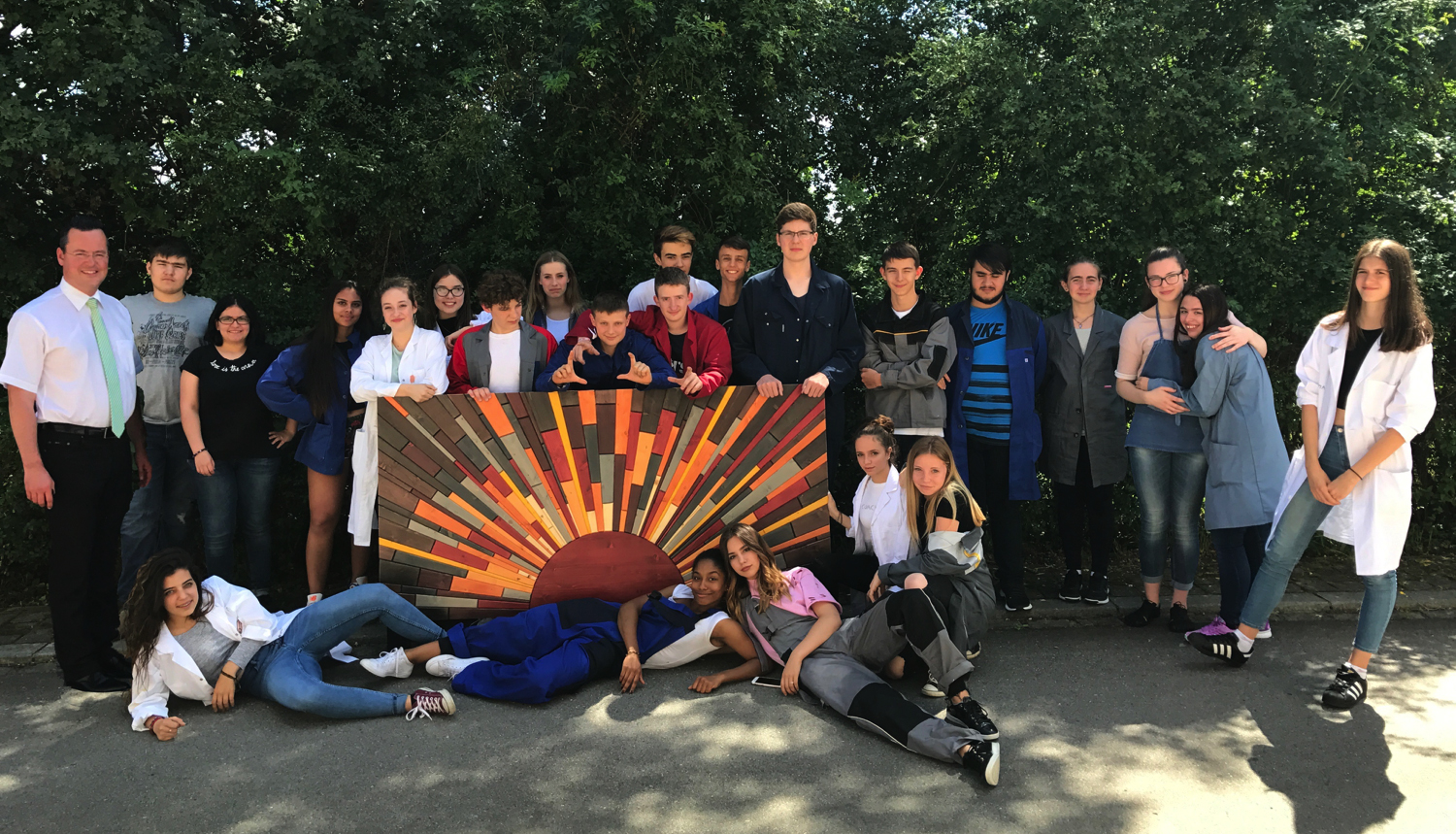 De Projet “The SUN”  (ee Bild aus eenzelnen Holzlamellen) ass vun den Schüler aus der 9STP3 realiséiert ginn. Mat vill Aarbecht a Gedold hunn d‘Schüler all eenzelt Stéck geschnidden, ugepasst an d‘Faarwekombinatioun selwer bestëmmt. Op der Porte Ouverte vum Lycée hu si och um Projet geschafft an et dem interesséierte Public virgestallt a si gutt viru komm. Um Enn, no 38 Stonne schaffen, hu si een “Unikat” realiséiert, dat een néierens ze kafen kritt. D‘Bild gëtt natierlech opgehaang a kritt eng adäquat Plaz am LJBM. BRAVO 9STP3!!! Théid BETZ – 07/2017