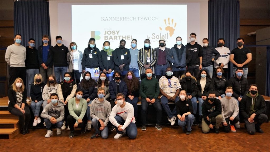 Ganz am Zeeche vun der Kannerrechtswoch an dem internationalen Dag vun de Kannerrechter, den 20. November, hunn d‘Schüler vun der 2CG an 2GA3D sech mat de Responsabelen vun der ONG ‘Le soleil dans la Main’ an enger Delegatioun aus dem Burkina Faso iwwert ë. a. de Schoulsystem, de Schoulalldag oder d‘bioklimatesch Architektur vun de Schoulgebaier ënnerhale kënnen. Den interessanten Austausch huet eemol méi dorop opmierksam gemaach, datt den Zougang zur Bildung keng Selbstverständlechkeet ronderëm d’Welt ass.