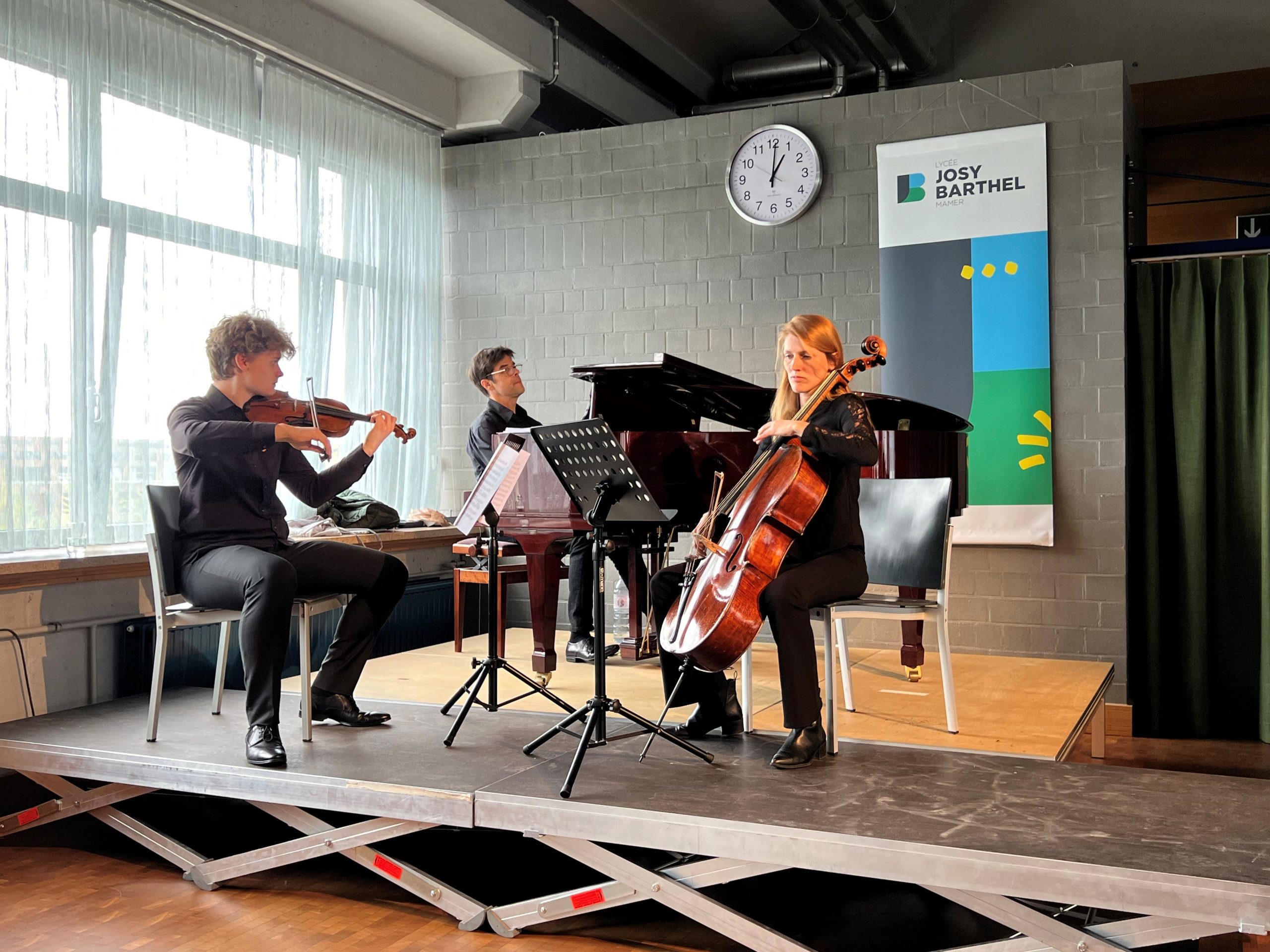 Den 30.4. kruten all eis 7e-Schüler e ganz flotte Concert ze héieren! D’Madamm Anik Schwall, den Här Yanis Grisó an den Här König vun de « Solistes Européens Luxembourg » hu Stécker vum Ludwig van Beethoven, Claude Debussy, Robert Schumann an Astor Piazzolla gespillt. Organiséiert gouf dëse flotte Moment vum Här Bonifas. E Merci un si alleguer!