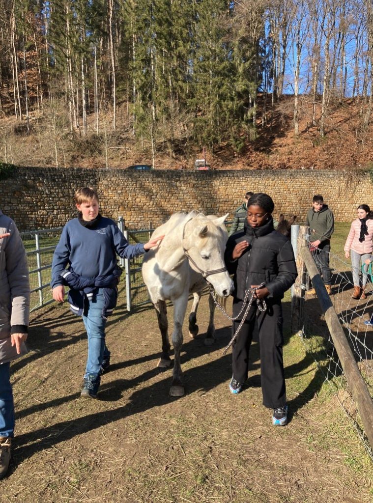 Wou kënnt d’Mëllech hir a wéi liewen d’Kéi um Bauerenhaff? Wéini kritt d’Kou e Källefchen a wat sinn d’Aufgabe vum Bauer? Den 20.2. hunn och d’Schüler vun der 7G1S e flotten Dag um Haff Vosman an am Mariendall verbruecht. Si konnten sech alles ukucken, selwer mat eng Hand upaken an dono souguer d’Mëllech an aner Produite selwer an der Kiche verschaffen an och schmaachen. Och déi aner Déiere vum Bauerenhaff goufe versuergt an d’Schüler hu geléiert, wéi d’Ernierung mat der Verdauung a mam Gebëss vum Déier zesummenhänkt. D’Fotoe weisen, datt eis Schüler vill Spaass haten.