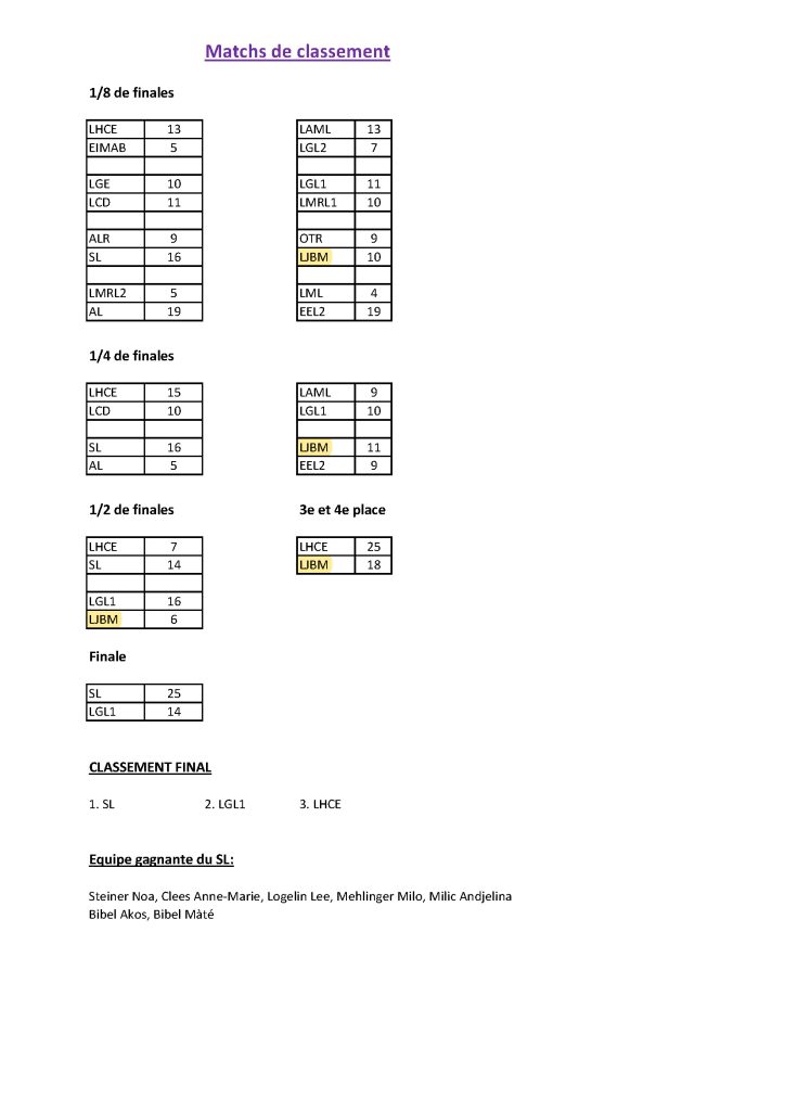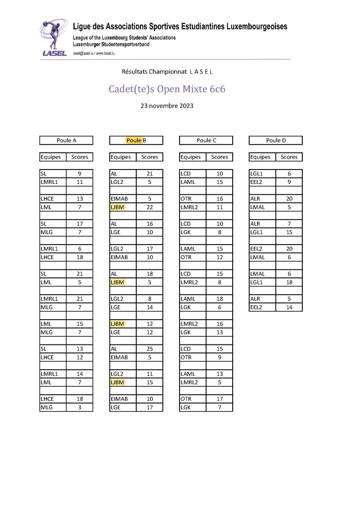En Donneschdeg, den 23.11., war LASEL Volleyball fir Cadets/Cadettes am AL an am LAML. Eis Ekipp ass an hirer Poule déi 2. ginn, an deemno hunn eis Schüler fir déi éischt Plaze gespillt. Um Enn ass eng 4. Plaz bei 20 Ekippen erauskomm. Merci un eis Spiller Anida, Julie, Leila, Victoria, Gabriel an Danis an en décke Bravo fir déi super Leeschtung!