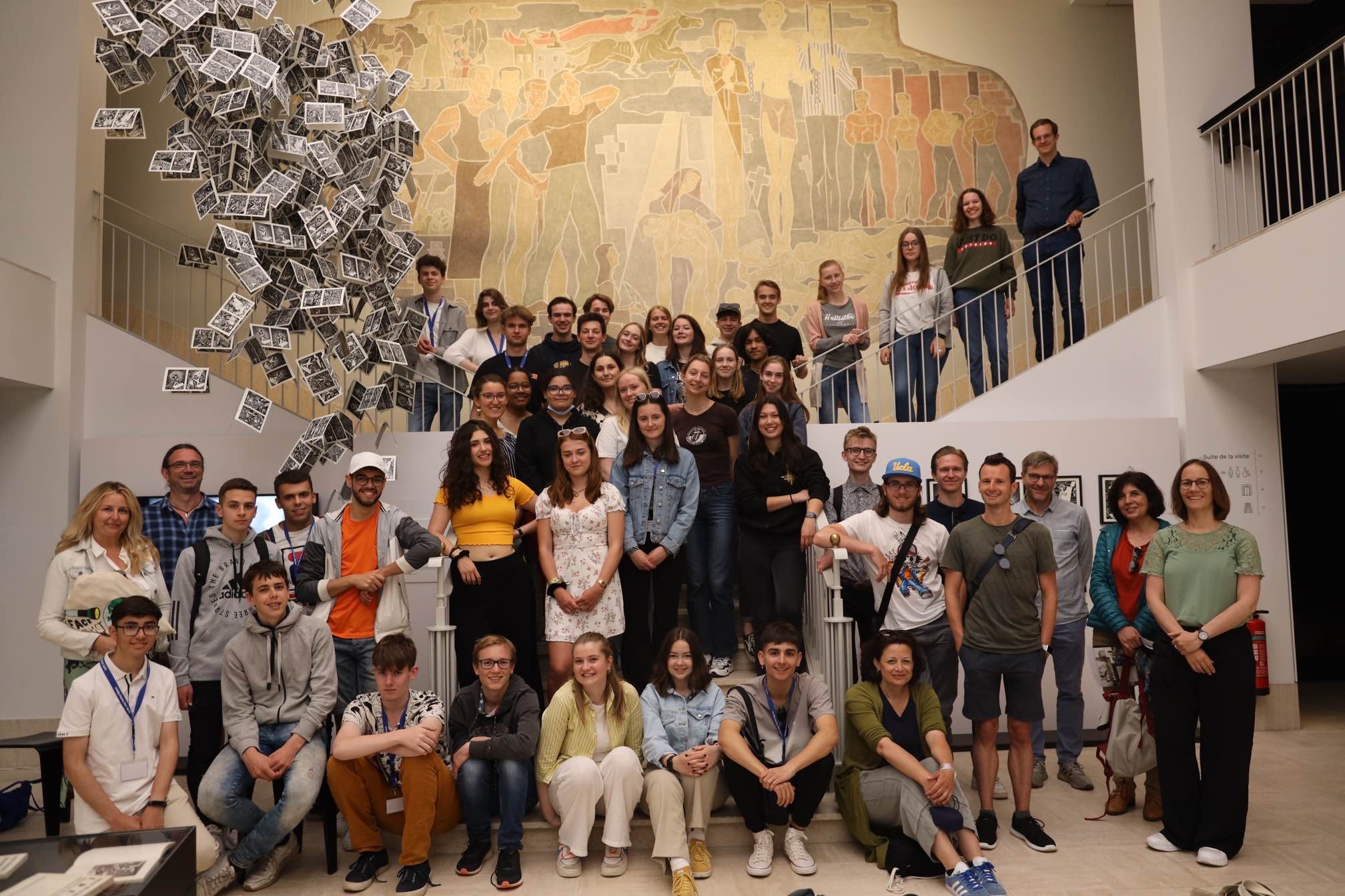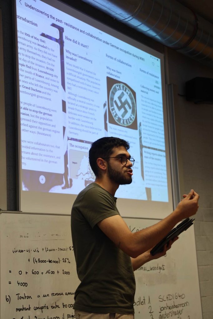 Pünktlech fir den Europadag de 9. Mee, sinn déi 4 Delegatiounen aus Spuenien, Schweden, Däitschland an der Belsch bei eis zu Lëtzebuerg ukomm an domat konnt déi grouss Ofschlosswoch vum “Erasmus+”-Projet bei eis am Lycée starten. Ënnert dem Motto “face the past – change our future“ hunn d’Schüler aus deene 5 Länner sech eng Woch laang mat de méi däischtere Säite vun der Lëtzebuerger Geschicht beschäftegt. Si si mam Film “Heim ins Reich” an enger Visitt am Resistenzmusée de Spuere vun der Lëtzebuerger Kollaboratioun am 2. Weltkrich nogaangen, konnten e Bléck an d’Villa Pauly geheien a krute bei enger flotter Visitt am Geschichtsmusée en interessanten Abléck an d’Kolonialzäit, wärend där d’Lëtzebuerger och hir Fanger am Spill haten. All dës Andréck hunn d’Schüler zum Schluss vun der Woch an engem Padlet festgehalen.