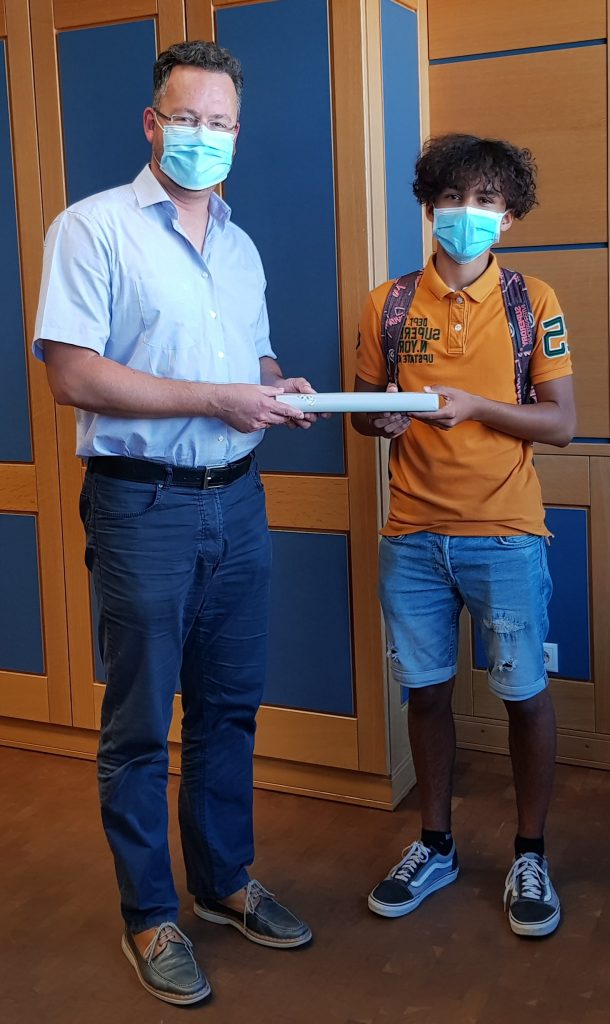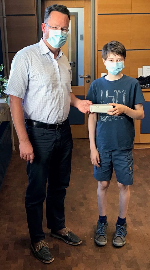Mir gratuléieren dem Tim vu Mamer, ab September Schüler op enger 7C am LJBM, zu sengem neien iPhone SE an dem Clayton vun Déifferdeng, ab September Schüler op enger 3G vun eiser Sektioun A3D, zu senger neier Apple Watch.