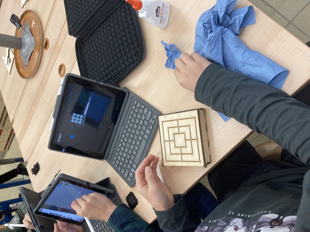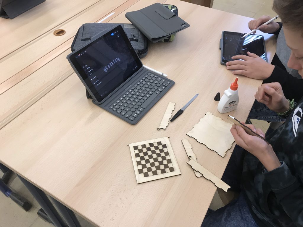 Ob an der Mëttespaus oder doheem mat der Famill a Kolleegen; mat engem Brietspill huet een iwwerall seng Freed! D’Schüler vun der 7C3 hunn sech dofir an der Optioun „Makerspace“ mat modernen Techniken ausernee gesat a klassesch Brietspiller hiergestallt! Si hunn hir Këscht missen dräidimensional mat Hëllef vun enger App um iPad zeechnen an dono mam Lasercutter aus Holz erausschneiden. Mam 3D-Drucker goufen dunn déi passend selwer entworfe Spillfiguren erausgedréckt.