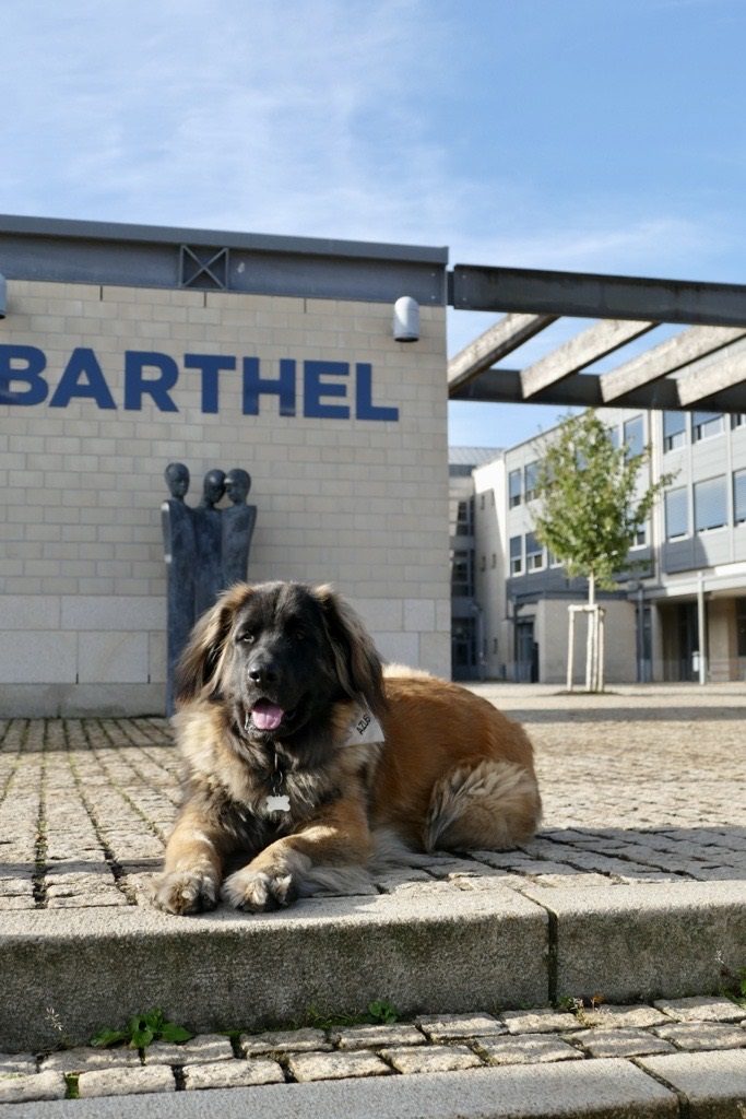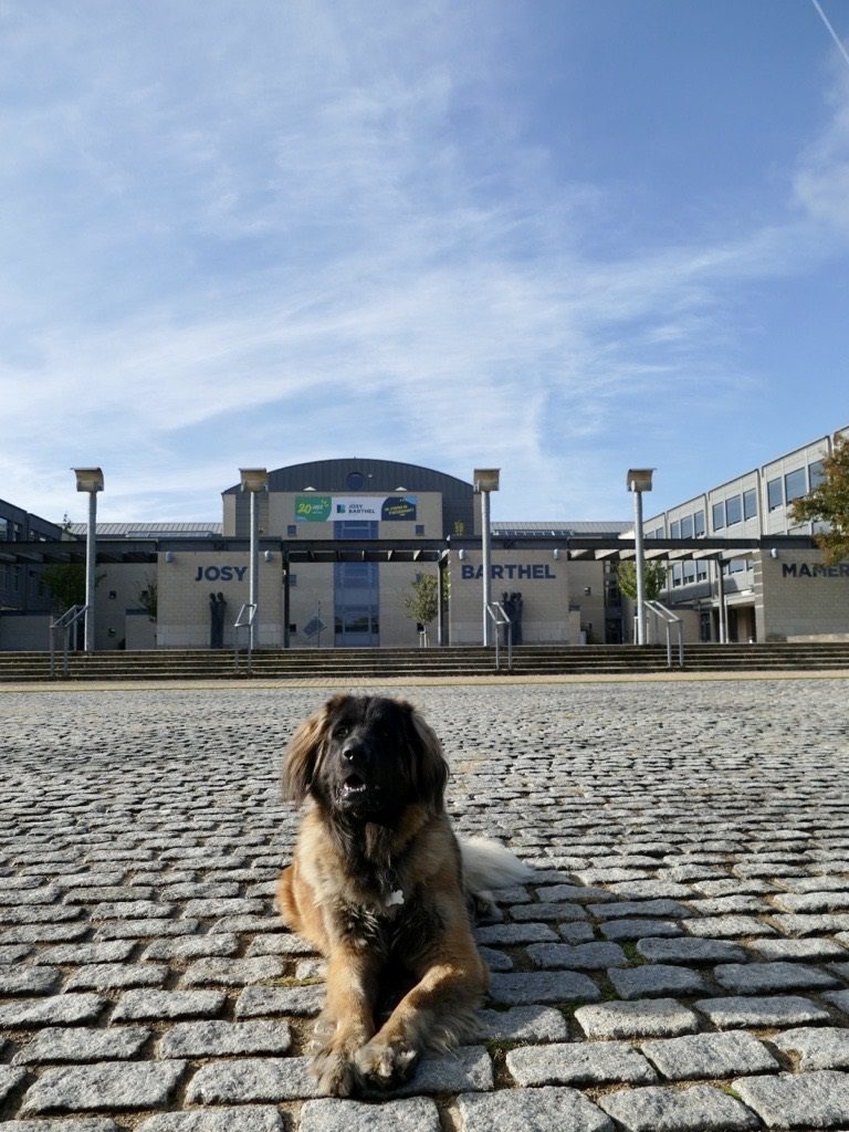 Wuff! Ech sinn d’Rosie, eng léif Leonbergerin vun 18 Méint, wat den 10. Juli 2022 offiziell zum Besuchs- an Therapieassistenz-Begleithond ginn ass. A geschwë ginn ech zum pedagogesche Begleithond, d. h. zum Schoulhond, soubal meng Meeschtesch an ech de leschten Deel vun der Formatioun gemaach hunn. Dofir muss ech awer elo lues a lues an de Lycée kommen, fir kënnen un e puer Projeten deelzehuelen, déi fir meng Ausbildung wichteg sinn.