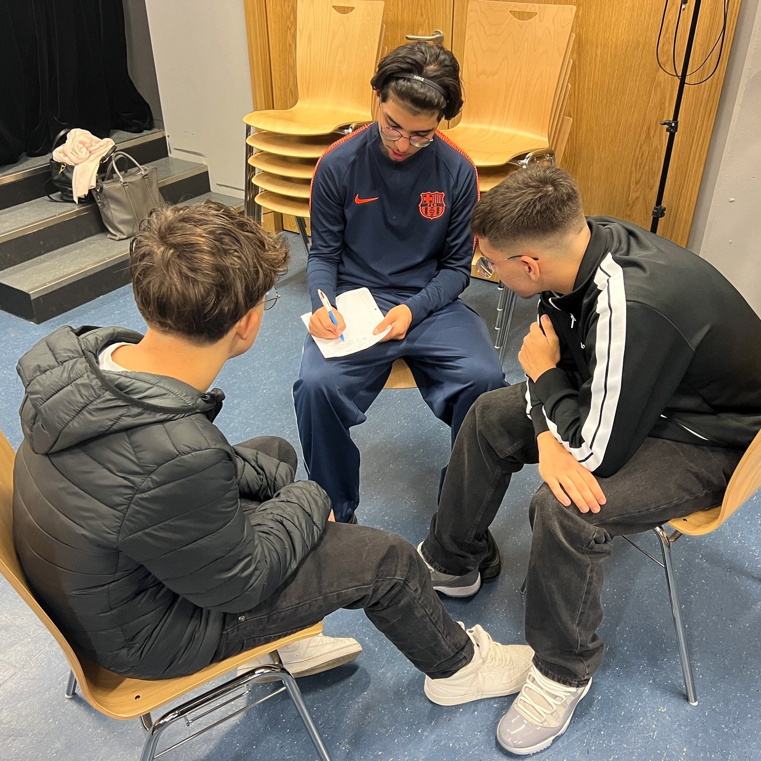 Den 22. Mäerz hunn d’Schüler vun der 5G2 an der 5G3 wärend dem Franséischcours un engem Slamatelier deelgeholl. Nodeems e puer Schüler am Ufank nach e bësse schei waren, hu si duerno awer alleguer ganz schéi Gedichter op Franséisch geschriwwen, op déi se houfreg konnte sinn! Poesie a Slam war awer net alles, wat an dësem Atelier gemaach gouf; d’Schüler hunn och e puer Boxtricker konnte léieren an ausprobéieren!