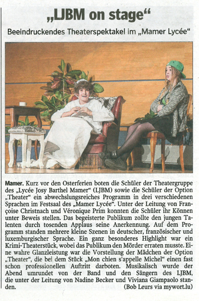 Article Tageblatt du 1er avril 2016 – [Photos]