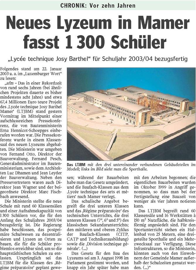 De Mamer Lycée mécht seng Diren op. Deemols war et nach e Lycée technique, haut ginn och am Classique d’Klasse bis Première ugebueden.