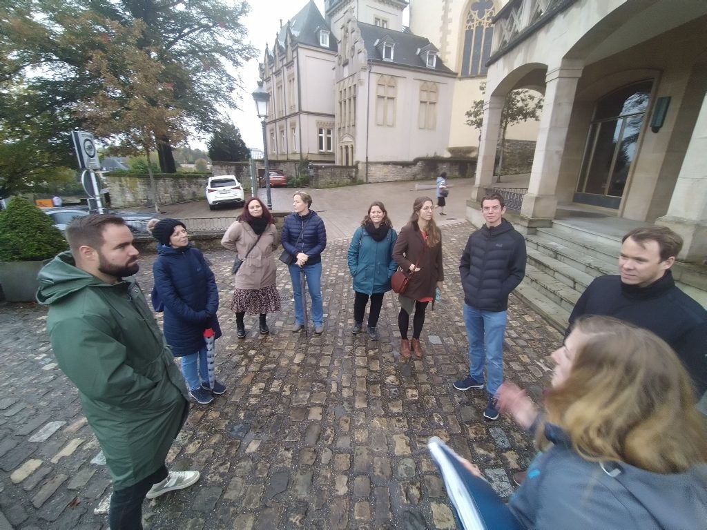 De 26.10. hu verschidde vun eisen Enseignanten ënnert der Leedung vun der Madamm Neises eng flott guidéiert Visitt vun der Stad Lëtzebuerg gemaach. Ugefaang hu si um Knuedler, wou si villes iwwert d’Stad an hir Perséinlechkeete gewuer goufen. Dono ass et weidergaangen a Richtung Wëllem, Palais a Chamber, wou eis Leit eng ganz Rei Fakten zu der politescher Entwécklung vum Land an och Anekdoten (Firwat gëtt et an der Chamber Rideauen?) héieren hunn. Vun do aus si se bei den Ursprong vun eisem Ländchen, de Bockfiels, gaangen. Hei krute si méi iwwert d’Festung, de Gronn an déi verschidde Friemherrschaften gezielt. No engem klenge Spadséiergang iwwert d’Corniche an engem kuerze Stopp am MNHA ass et du bei d’Gëlle Fra gaangen. Als Ofschloss gouf et en Iessen am Bazaar. D’Asbl seet der Madamm Neises villmools Merci fir déi flott Visitt!