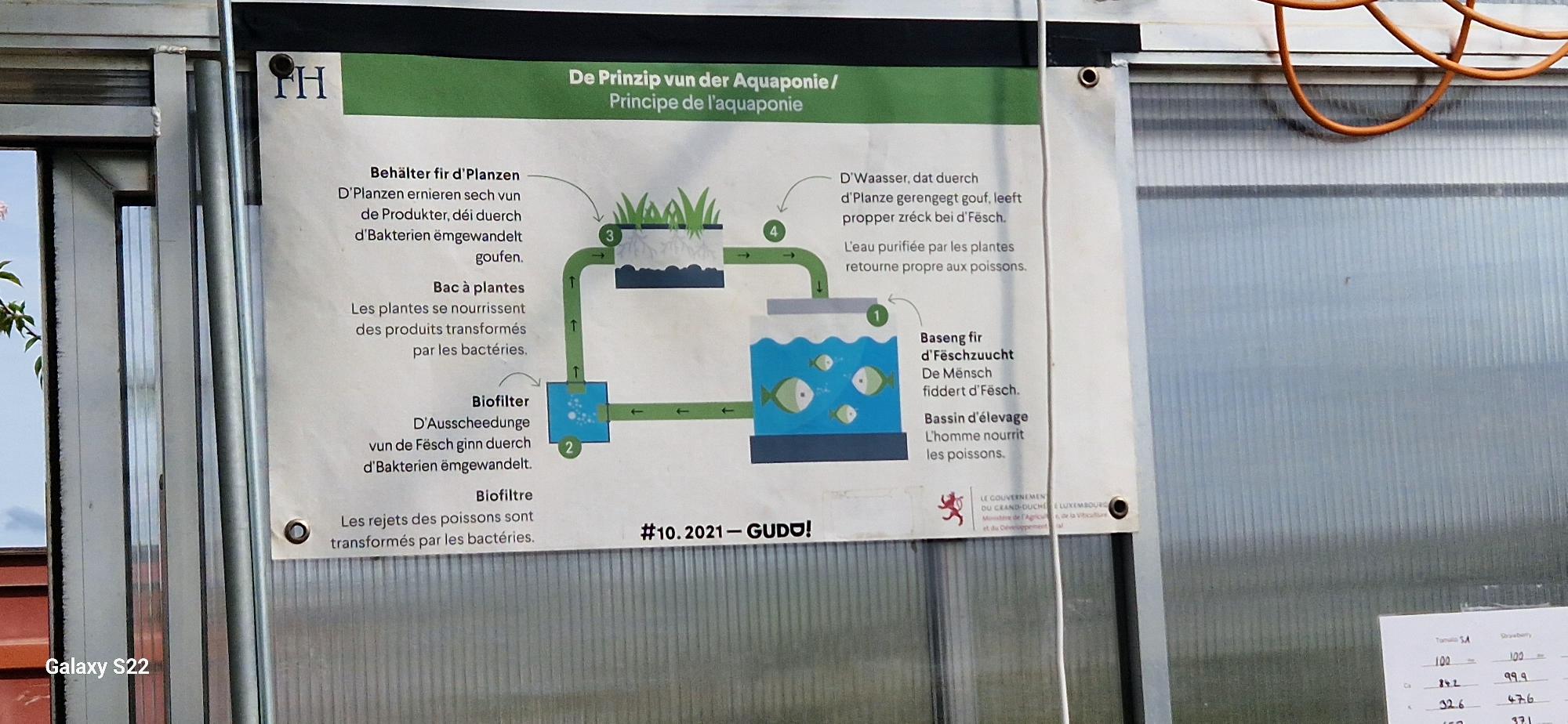 Eis Schüler vun der 2C-URBS hunn déi lescht Woch de Startup “Fësch Haff” besicht, déi éischt Aquaponie-Teststatioun zu Lëtzebuerg. Um Terrain hu si geléiert, wéi dësen nohaltege Prinzip fonctionéiert, dee Fëschzuucht an den Ubau vu Planze kombinéiert. D’Schüler konnten hei souguer selwer hir eege mini Anlag opbauen.